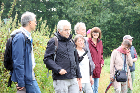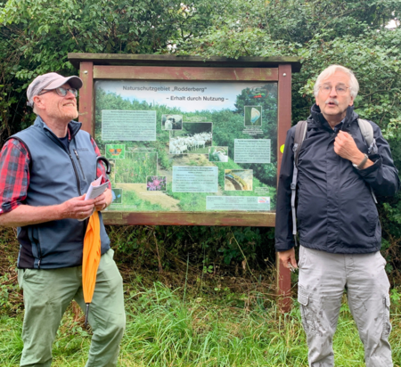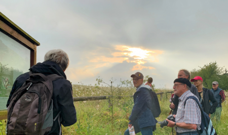 Dass es auch zum Alltag der Naturschutzbeauftragten gehört, Bürgerinnen oder Bürger auf mögliches Fehlverhalten hinzuweisen, erlebten die Kolleginnen und Kollegen hautnah, als Oliver Schall gegen Ende der eineinhalbstündigen Exkursion „amtlich“ wurde. Er wies eine Spaziergängerin freundlich darauf hin, dass es geboten sei, ihren Hund anzuleinen. Eine entsprechende Broschüre nahm die Dame schweigend entgegen. Die Naturschutzbeauftragten sind in der Regel an ihrem Dienstabzeichen zu erkennen und können sich mit einem Dienstausweis und einer Dienstmarke ausweisen. Neben freilaufenden Hunden gehören Wandernde oder Mountainbikes abseits ausgewiesener Wege zu den „Klassikern“ der Angesprochenen.